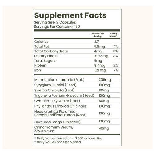 | Momordica Charantia (Fruit) | 300 mg | † |