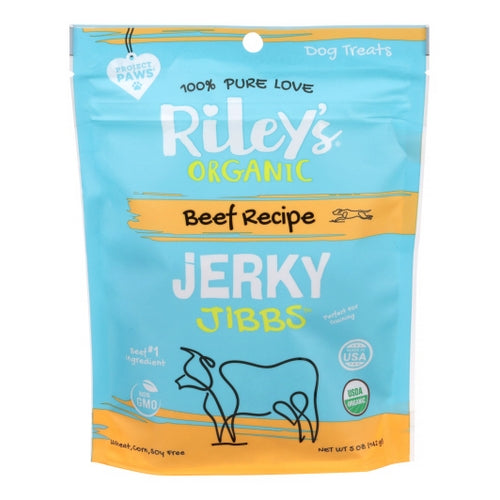 Riley’s organic beef jerky jibbs are the perfect way to return the love dog gives every day. Certified organic, jibbs are low in calories and perfect for training. These delicious treats are given a four paws vote of approval by dogs of all sizes. When you want to give best friend the very best, make it riley’s.