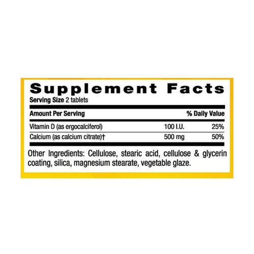 | Calcium (as calcium citrate) | 500 mg | 50% |