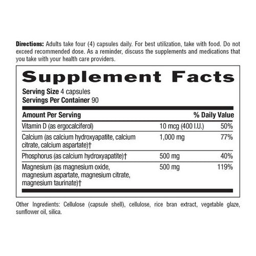 Calcium magnesium supplement helps to support bone health.** The target-mins formula is made with specific free-form amino acids and uses a calcium to phosphorus and calcium to magnesium ratio of 2:1 to support calcium utilization and the bodys availability of calcium.** This healthful blend of calcium and magnesium contains 1000 mg calcium, 500 mg magnesium and 500 mg phosphorus per serving.