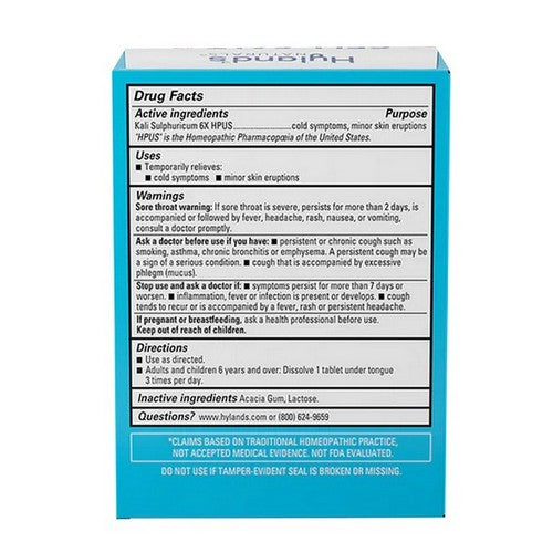 | Active Ingredients: Kali Sulphuricum 6X/30X HPUS: colds, skin eruptions. | ||