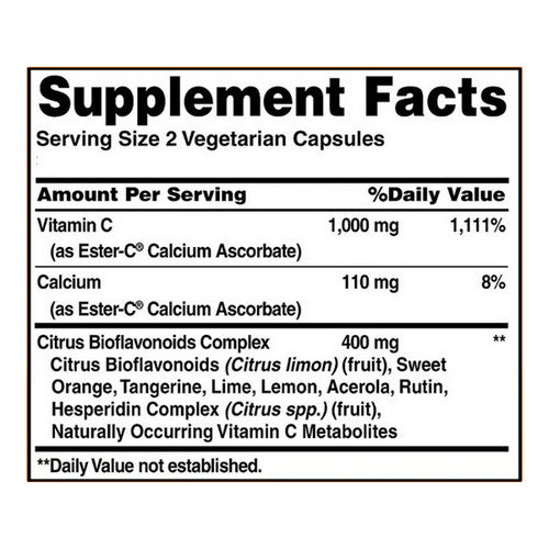 | Vitamin C (as Ester-C® Calcium Ascorbate) | 1,000 mg (1 g) | 1,667% |