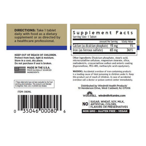 Windmill Health, Fe Tabs Ferrous Sulfate, 100 Tabs