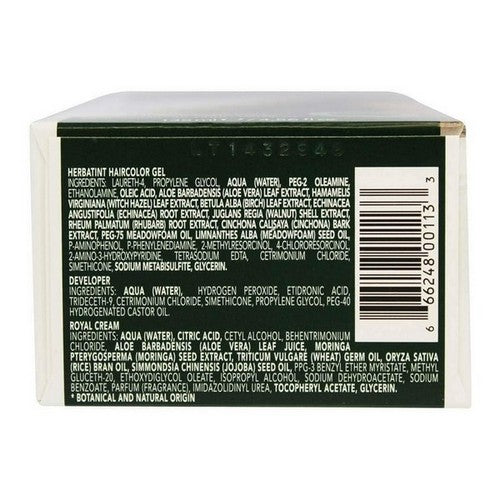 Herbatint Haircolor Gel Ingredients: laureth-5; propylene glycol; aqua/water; PEG-2 oleamine; ethanolamine; walnut extract; rhubarb extract; cinchona extract; aloe barbadensis extract; PEG-75 meadowfoam oil; p-aminophenol; echinacea angustifolia extract; p-phenylenediamine; betula alba leaf extract; hamamelis virginiana extract; resorcinol; o-aminophenol; sodium hydrosulfite; sodium ascorbate; tetrasodium EDTA; cetrimonium chloride; 2 amino 3 hydroxypiridine;