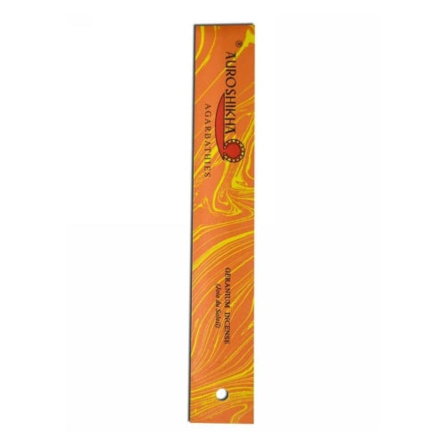 True to Nature Auroshikha Incense û GeraniumThe bright, uplifting fragrance of geranium conveys the feeling of spiritual happiness. It is calming and has a cheering effect in the garden.Auroshikha adds the essential oil of bergamot to a geranium oil base to create this incense. Geranium is particularly useful for bringing a touch of "sun-shine" to the mid-winter blues. This incense can be lit along with Sandalwood to create a lingering atmosphere of springtime warmth.