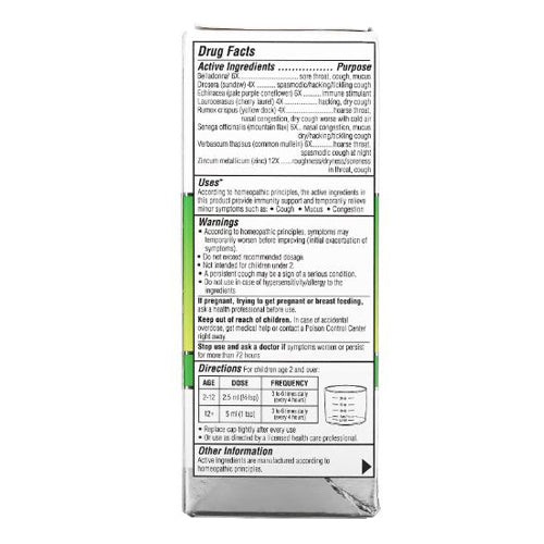 Homeopathic. Cough, Mucus And Congestion. Stimulates Natural Defenses. With Mountain Flax, Echinacea And Zinc.