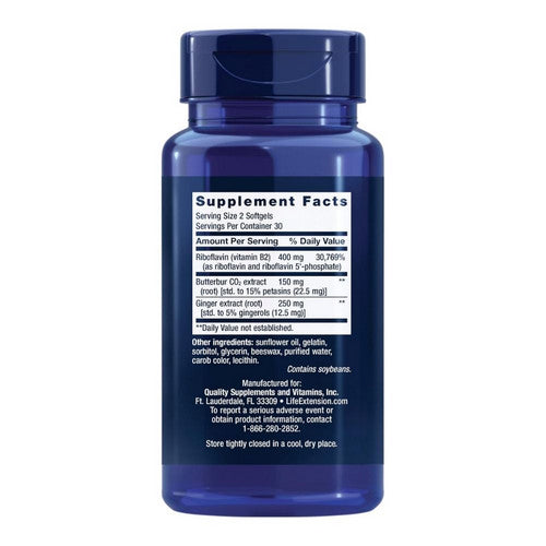 | Butterbur CO2 extract (root) [std. to 15% petasins (22.5 mg)] | 150 mg |