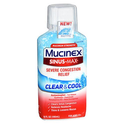 PRODUCT DESCRIPTION: Maximum Strength Mucinex Sinus-Max Clear & Cool, Severe Congestion Relief is specially formulated to coat your throat and release a menthol burst, which you can feel all the way into your nasal passages. Its triple action formula combines 3 maximum strength medicines in one dose. You’ll clear sinus pressure, relieve that annoying headache and give mucus the boot.