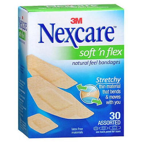 The bandage that is made from thin, stretchy material that bends and moves with you. Fabric for a flexible, comfortable fit. Soft breathable material allows sweat and moisture to evaporate. Unique shaped designed for better seal around pad. Latex free material. Sterility guaranteed unless individual wrapper is opened or damaged. Contains: 8 - 15/16 in x 1 1/8 in (23 mm x 28 mm); 8 - 1 1/8 x 3 in (28 mm x 76 mm); 14 - 7/8 x 2 1/4 in (22 mm x 57 mm).