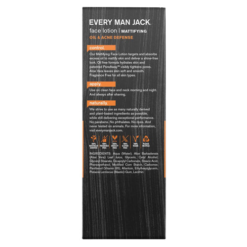 Every man jack oil defense mattifying face lotion relies on naturally derived and plant-based ingredients as much as possible, so you can feel confident about what goes on your skin. This oil-free formula hydrates and nourishes your face, and it also absorbs oil and mattifies skin to create a shine-free appearance.