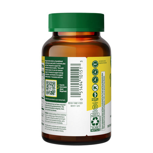 Take any time of day: Take 1 tablet any time of day, even on an empty stomach; Includes organic carrots, oranges, broccoli and added nutrients.
