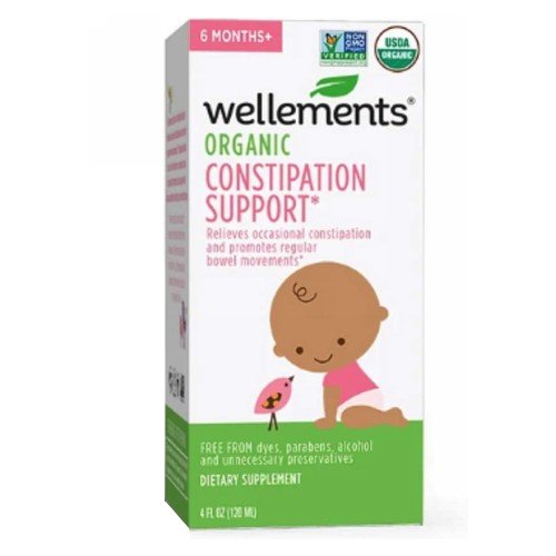 Wellements organic baby constipation support is a sweet tasting helps occasional constipation and promotes regular bowel movements. It is designed without the use of harsh laxatives to be safe, gentle and effective for infant or toddler. wellements baby move is a natural form made with Organic prune concentrate that can help relieve your babys occasional constipation. The natural fiber and sugar found in prunes make them a well known natural laxative that is easy on your babys tummy. Unique prebiotic blend will also help support your babys digestion.
