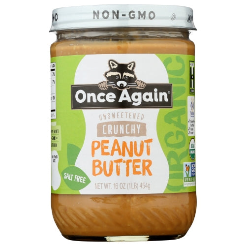 Peanut butter,that is crunchy no salt is great on sandwiches and baked goods. This product is made with organic peanuts, milled with the skins left on, and comes packaged for your convenience in a recyclable jar for easy disposal. Once again creamy peanut butter contains 16 oz. Of product in every jar.