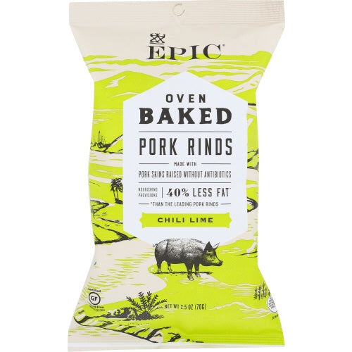 Satisfy your crunch craving when you reach for a bag for your next snack, lunch or as a breading alternative. With Chili Lime Baked Pork Rinds are made with pork skins, lime, and a custom pepper spice blend.