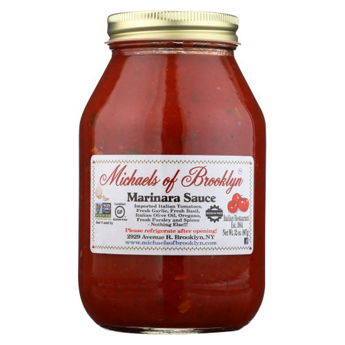 Sauce marinara is made of imported tomatoes, fresh basil, fresh garlic, italian olive oil, spices and fresh parsley.