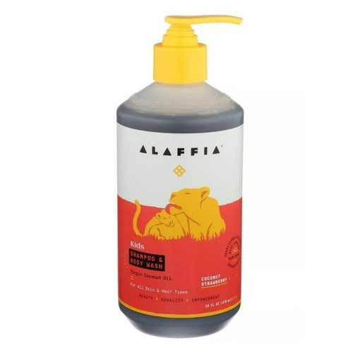 Alaffia's playful coconut strawberry shampoo & body wash, prepared with Ethically Traded virgin coconut oil, strawberry and hibiscus, nourishes and softens hair and skin. Gentle and non-irritating for EveryDay clean fun.