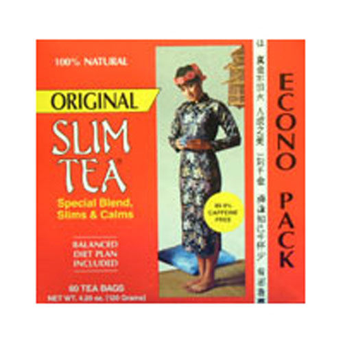 100% Natural. Original Slim Tea special blend, slims & calms. Balanced diet plan included. 24 tea bags. 99.9% caffeine free. Slim Tea is made only from rare hand-picked Chinese tea leaves. Slim tea is the original weight loss tea and has a unique, delicious flavor and rich golden color. Slim tea, when enjoyed after meals, counteracts the effect of fats by emulsifying tract and hastens digestion. Slim Tea offers a light, satisfying taste in hot or iced tea and provides slimming and calming benefits that may be enjoyed every day and evening and in times of stress. The Original Slim Tea blend of 100% natural rare species of Chinese Oolong tea has been reknowned for its slimming and calming benefits for over 1500 years. Legend has it that early Chinese emperors and monks trained monkeys to pick the superior tea leaves for his special blend from tea trees o the edge of cliffs, high in the mountains of southern China and Taiwan. Today, this special blend, handed down from dynasty to dynasty,