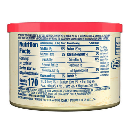 {"id":6999748411477,"title":"Blue Diamond, Smokehouse Almonds, 6 Oz(Case Of 12)","handle":"smokehouse-almonds-256453","description":"\u003cstrong\u003eProduct Description\u003c\/strong\u003e\u003cbr\u003e\u003cbr\u003e Smokehouse almonds they are a flavor filled treat packed with goodness with sweet and tangy flavor. \u003cbr\u003e\u003cbr\u003e\u003cstrong\u003eProduct Benefits\u003c\/strong\u003e\u003cbr\u003e\n\t\u003cbr\u003e Smokehouse.\nIrresistible Snacking. \u003cbr\u003e\u003cbr\u003e\u003cstrong\u003eIngredients\u003c\/strong\u003e\u003cbr\u003e\u003cbr\u003e \u003cdiv class=\"prodSupCls\"\u003e\n\u003ctable width=\"100%\" border=\"1\" cellspacing=\"0\" cellpadding=\"3\"\u003e\n\u003ctr\u003e\n \u003ctd colspan=\"3\"\u003e\n\u003cp\u003e\u003cstrong style=\"font-size:16px;\"\u003eSupplement Facts\u003c\/strong\u003e\u003cstrong\u003e\u003cspan style=\"float: right\"\u003eServing \n Size: 28 Grams \u003c\/span\u003e\u003c\/strong\u003e\u003c\/p\u003e\n \u003cp\u003e \u003c\/p\u003e\n\u003c\/td\u003e\n\u003c\/tr\u003e\n \u003ctr\u003e\n \u003ctd width=\"49%\"\u003e\u003c\/td\u003e\n \u003ctd width=\"24%\"\u003e\u003cstrong\u003eAmount Per Serving \u003c\/strong\u003e\u003c\/td\u003e\n \u003ctd width=\"27%\"\u003e\u003cstrong\u003e% Daily Value\u003c\/strong\u003e\u003c\/td\u003e\n \u003c\/tr\u003e\n \u003ctr\u003e\n \u003ctd\u003eCalories\u003c\/td\u003e\n \u003ctd\u003e180\u003c\/td\u003e\n \u003ctd\u003e\u003c\/td\u003e\n \u003c\/tr\u003e\n \u003ctr\u003e\n \u003ctd\u003eTotal Fat\u003c\/td\u003e\n \u003ctd\u003e16g\u003c\/td\u003e\n \u003ctd\u003e20%\u003c\/td\u003e\n \u003c\/tr\u003e\n \u003ctr\u003e\n \u003ctd\u003eSaturated Fat\u003c\/td\u003e\n \u003ctd\u003e1g\u003c\/td\u003e\n \u003ctd\u003e6%\u003c\/td\u003e\n \u003c\/tr\u003e\n\u003ctr\u003e\n \u003ctd\u003eTrans Fat\u003c\/td\u003e\n \u003ctd\u003e0g\u003c\/td\u003e\n \u003ctd\u003e\u003c\/td\u003e\n \u003c\/tr\u003e\n\u003ctr\u003e\n \u003ctd\u003ePolyunsaturated Fat\n\u003c\/td\u003e\n \u003ctd\u003e3.5g\u003c\/td\u003e\n \u003ctd\u003e \u003c\/td\u003e\n \u003c\/tr\u003e\n\u003ctr\u003e\n \u003ctd\u003eMonounsaturated Fat\n\u003c\/td\u003e\n \u003ctd\u003e10g\u003c\/td\u003e\n \u003ctd\u003e \u003c\/td\u003e\n \u003c\/tr\u003e\n\u003ctr\u003e\n \u003ctd\u003eCholesterol\u003c\/td\u003e\n \u003ctd\u003e0mg\u003c\/td\u003e\n \u003ctd\u003e0%\u003c\/td\u003e\n \u003c\/tr\u003e\n\u003ctr\u003e\n \u003ctd\u003eSodium\u003c\/td\u003e\n \u003ctd\u003e150mg\u003c\/td\u003e\n \u003ctd\u003e7%\u003c\/td\u003e\n \u003c\/tr\u003e\n\u003ctr\u003e\n \u003ctd\u003eTotal Carbohydrate\u003c\/td\u003e\n \u003ctd\u003e5g\u003c\/td\u003e\n \u003ctd\u003e2%\u003c\/td\u003e\n \u003c\/tr\u003e\n \n \u003ctr\u003e\n \u003ctd\u003eDietary Fiber\n\u003c\/td\u003e\n \u003ctd\u003e3g\u003c\/td\u003e\n \u003ctd\u003e10%\u003c\/td\u003e\n \u003c\/tr\u003e\n \n \u003ctr\u003e\n \u003ctd\u003eTotal Sugars\n\u003c\/td\u003e\n \u003ctd\u003e1g\u003c\/td\u003e\n \u003ctd\u003e\u003c\/td\u003e\n \u003c\/tr\u003e\n \n \u003ctr\u003e\n \u003ctd\u003eIncludes 0g Added Sugars\n\u003c\/td\u003e\n \u003ctd\u003e\u003c\/td\u003e\n \u003ctd\u003e0%\u003c\/td\u003e\n \u003c\/tr\u003e\n \n \u003ctr\u003e\n \u003ctd\u003eProtein\u003c\/td\u003e\n \u003ctd\u003e6g\u003c\/td\u003e\n \u003ctd\u003e\u003c\/td\u003e\n \u003c\/tr\u003e\n \n \u003ctr\u003e\n \u003ctd\u003eVitamin D\n\u003c\/td\u003e\n \u003ctd\u003e0mcg\u003c\/td\u003e\n \u003ctd\u003e0%\u003c\/td\u003e\n \u003c\/tr\u003e\n \n \u003ctr\u003e\n \u003ctd\u003eCalcium\u003c\/td\u003e\n \u003ctd\u003e80mg\u003c\/td\u003e\n \u003ctd\u003e6%\u003c\/td\u003e\n \u003c\/tr\u003e\n \n \u003ctr\u003e\n \u003ctd\u003eIron\u003c\/td\u003e\n \u003ctd\u003e1mg\u003c\/td\u003e\n \u003ctd\u003e6%\u003c\/td\u003e\n \u003c\/tr\u003e\n \n \u003ctr\u003e\n \u003ctd\u003ePotassium\u003c\/td\u003e\n \u003ctd\u003e190mg\u003c\/td\u003e\n \u003ctd\u003e4%\u003c\/td\u003e\n \u003c\/tr\u003e\n \n \u003ctr\u003e\n \u003ctd\u003eVitamin E\u003c\/td\u003e\n \u003ctd\u003e7.2mg\u003c\/td\u003e\n \u003ctd\u003e50%\u003c\/td\u003e\n \u003c\/tr\u003e\n \n \u003ctr\u003e\n \u003ctd\u003eMagnesium\u003c\/td\u003e\n \u003ctd\u003e75mg\u003c\/td\u003e\n \u003ctd\u003e15%\u003c\/td\u003e\n \u003c\/tr\u003e\n \u003ctr\u003e\n \u003ctd colspan=\"3\" style=\"text-transform:capitalize;\"\u003e*The % Daily Value \n tells you how much a nutrient in a serving of food contributes to a daily \n diet. 2,000 calories a day is used for general nutrition advice.\u003c\/td\u003e\n \u003c\/tr\u003e \n \u003c\/table\u003e\n \u003c\/div\u003e\n\t\u003cbr\u003e\u003cbr\u003e\u003cstrong\u003eSuggestions\u003c\/strong\u003e\u003cbr\u003e\u003cbr\u003e \u003cbr\u003e\u003cbr\u003e\u003cstrong\u003eSpecial Note\u003c\/strong\u003e\u003cbr\u003e\u003cbr\u003e\n\t\n\t\u003cbr\u003e\u003cbr\u003e\u003cstrong\u003eWarnings\u003c\/strong\u003e\u003cbr\u003e\u003cbr\u003e \u003cbr\u003e\u003cbr\u003e\u003cstrong\u003eCalifornia Proposition 65 WARNING\u003c\/strong\u003e\u003cbr\u003e\u003cbr\u003eSome products on this website contains progesterone, a chemical known to the State of \n\t\t\t\t\t\t\t\tCalifornia to cause cancer. Consult with your physician before using this product.\u003cbr\u003e\u003cbr\u003e\u003cstrong\u003eDisclaimer\u003c\/strong\u003e\u003cbr\u003e\u003cbr\u003eHerbsdaily.com offers\n\t\t\t\t\t\t\t\tnationally branded products that are produced according to manufacturing standards\n\t\t\t\t\t\t\t\tset by regulators at everyday low prices. Do not use unproven, unbranded products, which can pose serious risks to your health.","published_at":"2024-02-22T13:00:49-08:00","created_at":"2024-02-22T13:00:51-08:00","vendor":"Blue Diamond","type":"Mixed Nuts \u0026 Trail Mix","tags":["Brand_Blue Diamond","Groceries","MixedNutsTrailMix","NutsSeeds"],"price":7686,"price_min":7686,"price_max":7686,"available":true,"price_varies":false,"compare_at_price":9108,"compare_at_price_min":9108,"compare_at_price_max":9108,"compare_at_price_varies":false,"variants":[{"