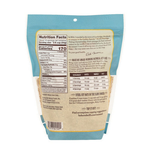 {"id":6999481450581,"title":"Bobs Red Mill, Steel Cut Oats, 24 Oz(Case Of 4)","handle":"steel-cut-oats-192776","description":"\u003cstrong\u003eProduct Description\u003c\/strong\u003e\u003cbr\u003e\u003cbr\u003e Steel cut oatmeal is made from whole oat groats that have been cut into neat little pieces on a steel buhr mill. We use high protein, whole grain oats that have been lightly toasted. Also known asirish oats or pinhead oats, steel cut oats have a firmer bite than traditional rolled oats, and can also be used in savory dishes like risotto. \u003cbr\u003e\u003cbr\u003e\u003cstrong\u003eProduct Benefits\u003c\/strong\u003e\u003cbr\u003e\n\t\u003cbr\u003e Good Source Of Fiber And Protein And Low In Saturated Fat.\nHigh Protein, Whole Grain Oats. \u003cbr\u003e\u003cbr\u003e\u003cstrong\u003eIngredients\u003c\/strong\u003e\u003cbr\u003e\u003cbr\u003e \u003cdiv class=\"prodSupCls\"\u003e\n\u003ctable width=\"100%\" border=\"1\" cellspacing=\"0\" cellpadding=\"3\"\u003e\n\u003ctr\u003e\n \u003ctd colspan=\"3\"\u003e\n\u003cp\u003e\u003cstrong style=\"font-size:16px;\"\u003eSupplement Facts\u003c\/strong\u003e\u003cstrong\u003e\u003cspan style=\"float: right\"\u003eServing \n Size: 1\/4 Cup (44g).\u003c\/span\u003e\u003c\/strong\u003e\u003c\/p\u003e\n \u003cp\u003e \u003c\/p\u003e\n\u003c\/td\u003e\n\u003c\/tr\u003e\n \u003ctr\u003e\n \u003ctd style=\"width: 49%; height: 27px;\"\u003e\u003c\/td\u003e\n \u003ctd width=\"24%\" style=\"height: 27px\"\u003e\u003cstrong\u003eAmount Per Serving \u003c\/strong\u003e\u003c\/td\u003e\n \u003ctd width=\"27%\" style=\"height: 27px\"\u003e\u003cstrong\u003e% Daily Value\u003c\/strong\u003e\u003c\/td\u003e\n \u003c\/tr\u003e\n \u003ctr\u003e\n \u003ctd style=\"width: 49%; height: 27px;\"\u003eCalories\u003c\/td\u003e\n \u003ctd style=\"height: 27px\"\u003e170\u003c\/td\u003e\n \u003ctd style=\"height: 27px\"\u003e\u003c\/td\u003e\n \u003c\/tr\u003e\n \u003ctr\u003e\n \u003ctd style=\"width: 49%\"\u003eTotal Fat \u003c\/td\u003e\n \u003ctd\u003e2.5g\u003c\/td\u003e\n \u003ctd\u003e3%\u003c\/td\u003e\n \u003c\/tr\u003e\n\u003ctr\u003e\n \u003ctd style=\"width: 49%\"\u003eSaturated Fat\u003c\/td\u003e\n \u003ctd\u003e0.5g\u003c\/td\u003e\n \u003ctd\u003e3%\u003c\/td\u003e\n \u003c\/tr\u003e\n\u003ctr\u003e\n \u003ctd style=\"width: 49%\"\u003eTrans Fat \u003c\/td\u003e\n \u003ctd\u003e0g\u003c\/td\u003e\n \u003ctd\u003e \u003c\/td\u003e\n \u003c\/tr\u003e\n \n\u003ctr\u003e\n \u003ctd style=\"width: 49%\"\u003eCholesterol \u003c\/td\u003e\n \u003ctd\u003e0mg\u003c\/td\u003e\n \u003ctd\u003e0%\u003c\/td\u003e\n \u003c\/tr\u003e\n \n \u003ctr\u003e\n \u003ctd style=\"width: 49%; height: 27px;\"\u003esodium\u003c\/td\u003e\n \u003ctd style=\"height: 27px\"\u003e0mg\u003c\/td\u003e\n \u003ctd style=\"height: 27px\"\u003e0%\u003c\/td\u003e\n \u003c\/tr\u003e\n \u003ctr\u003e\n \u003ctd\u003eTotal Carbohydrate\u003c\/td\u003e\n \u003ctd\u003e31g\u003c\/td\u003e\n \u003ctd\u003e11%\u003c\/td\u003e\n \u003c\/tr\u003e\n \u003ctr\u003e\n \u003ctd style=\"width: 49%; height: 27px;\"\u003eDietary Fiber\u003c\/td\u003e\n \u003ctd style=\"height: 27px\"\u003e5g\u003c\/td\u003e\n \u003ctd style=\"height: 27px\"\u003e18%\u003c\/td\u003e\n \u003c\/tr\u003e\n \u003ctr\u003e\n \u003ctd style=\"width: 49%\"\u003eTotal Sugars \u003c\/td\u003e\n \u003ctd\u003e1g\u003c\/td\u003e\n \u003ctd\u003e \u003c\/td\u003e\n \u003c\/tr\u003e\n \u003ctr\u003e\n \u003ctd style=\"width: 49%\"\u003eIncludes 0g Added Sugars \u003c\/td\u003e\n \u003ctd\u003e \u003c\/td\u003e\n \u003ctd\u003e0%\u003c\/td\u003e\n \u003c\/tr\u003e\n \u003ctr\u003e\n \u003ctd style=\"width: 49%;\"\u003eProtein \u003c\/td\u003e\n \u003ctd style=\"height: 27px\"\u003e6g\u003c\/td\u003e\n \u003ctd style=\"height: 27px\"\u003e \u003c\/td\u003e\n \u003c\/tr\u003e\n \u003ctr\u003e\n \u003ctd style=\"width: 49%\"\u003eVitamin D\u003c\/td\u003e\n \u003ctd\u003e0mcg\u003c\/td\u003e\n \u003ctd\u003e0%\u003c\/td\u003e\n \u003c\/tr\u003e\n \u003ctr\u003e\n \u003ctd style=\"width: 49%; height: 27px;\"\u003eCalcium \u003c\/td\u003e\n \u003ctd style=\"height: 27px\"\u003e15mg\u003c\/td\u003e\n \u003ctd style=\"height: 27px\"\u003e2%\u003c\/td\u003e\n \u003c\/tr\u003e\n \u003ctr\u003e\n \u003ctd style=\"width: 49%; height: 27px;\"\u003eIron\u003c\/td\u003e\n \u003ctd style=\"height: 27px\"\u003e2mg\u003c\/td\u003e\n \u003ctd style=\"height: 27px\"\u003e10%\u003c\/td\u003e\n \u003c\/tr\u003e\n \u003ctr\u003e\n \u003ctd style=\"width: 49%\"\u003ePotassium \u003c\/td\u003e\n \u003ctd\u003e162mg\u003c\/td\u003e\n \u003ctd\u003e4%\u003c\/td\u003e\n \u003c\/tr\u003e\n \u003ctr\u003e\n \u003ctd colspan=\"3\" class=\"auto-style1\"\u003e*The % Daily Value (DV) tells how much \n a nutrient in a serving of food contributes to a daily diet. 2,000 \n calories a day is used for general nutrition advice.\u003c\/td\u003e\n \u003c\/tr\u003e \n \u003ctr\u003e\n \u003ctd colspan=\"3\" style=\"text-transform:capitalize;\"\u003e\n\u003cstrong\u003eOther Ingredients:\u003c\/strong\u003e \n Whole grain oats.\u003c\/td\u003e\n \u003c\/tr\u003e \n \u003c\/table\u003e\n \u003c\/div\u003e\n\t\u003cbr\u003e\u003cbr\u003e\u003cstrong\u003eSuggestions\u003c\/strong\u003e\u003cbr\u003e\u003cbr\u003e \u003cbr\u003e\u003cbr\u003e\u003cstrong\u003eSpecial Note\u003c\/strong\u003e\u003cbr\u003e\u003cbr\u003e\n\tKosher.\nVegan.\nKeto Friendly.\nNon Gmo.\n\n\t\u003cbr\u003e\u003cbr\u003e\u003cstrong\u003eWarnings\u003c\/strong\u003e\u003cbr\u003e\u003cbr\u003e \u003cbr\u003e\u003cbr\u003e\u003cstrong\u003eCalifornia Proposition 65 WARNING\u003c\/strong\u003e\u003cbr\u003e\u003cbr\u003eSome products on this website contains progesterone, a chemical known to the State of \n\t\t\t\t\t\t\t\tCalifornia to cause cancer. Consult with your physician before using this product.\u003cbr\u003e\u003cbr\u003e\u003cstrong\u003eDisclaimer\u003c\/strong\u003e\u003cbr\u003e\u003cbr\u003eHerbsdaily.com offers\n\t\t\t\t\t\t\t\tnationally branded products that are produced according to 