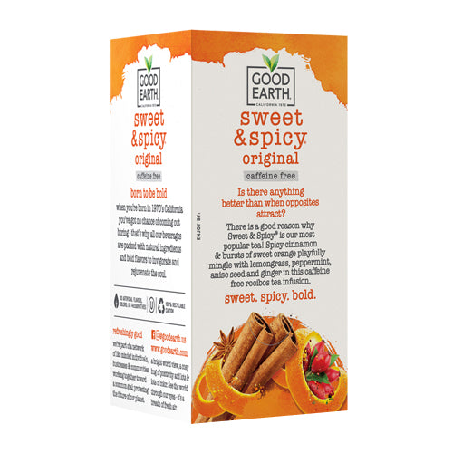 When nothing less than organic ingredients will do, this is the Sweet & Spicy tea for you. We took naturally rooibos tea and infused it with sweet pops of citrus, then spiced things up with cinnamon and other flavors to get tongue tingling like lemongrass, peppermint, anise seed, and ginger.