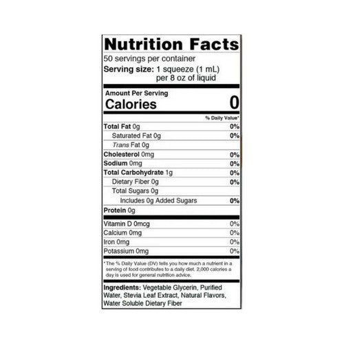 | Ingredients: Vegetable glycerin, purified water, natural vanilla extract, stevia leaf extract, water soluble dietary fiber. |