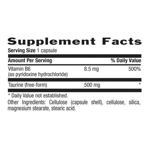 Taurine is an amino acid found in the nervous system and muscles. It is one of the most abundant intracellular amino acids in the body and plays a role in nerve activity. Taurine to support the nervous system and cardiovascular health, and uses Vitamin B6 to aid in utilization.
