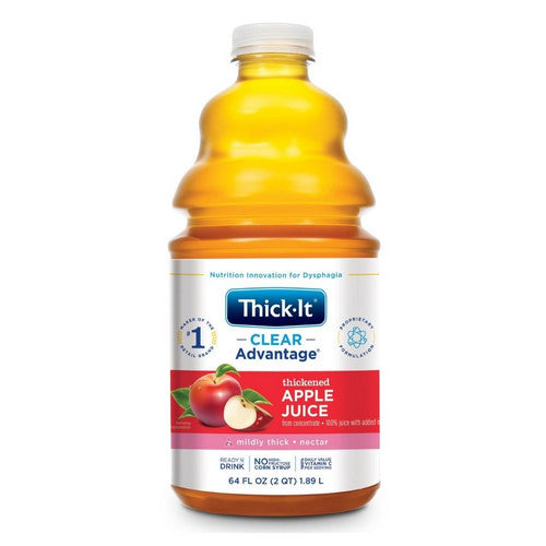 Specifically designed to provide proper nutrition and hydration for people with swallowing disorders. Thickened apple juice from concentrate; 100% juice with added ingredients. Made with Artesian mineral water from 600 feet below ground, which results in thickened beverages that look and taste natural. No high fructose corn syrup. Retains proper consistency when chilled, frozen/thawed or heated. Do not use Thick-It Clear Advantage with infants under the age of 2. Thick-ItClear Advantage should only be used with children under the age of 12 in consultation with a physician.