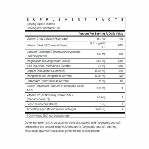 | Calcium (elemental) (from microcrystalline hydroxyapatite) | 1200 mcg | 120% |