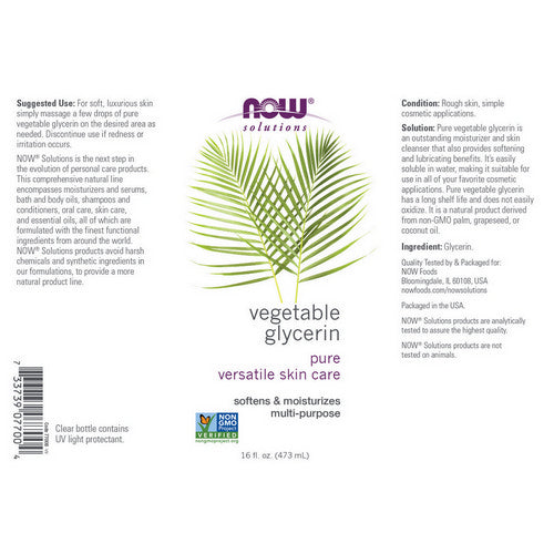 Pure vegetable glycerin is an outstanding moisturizer and skin cleanser that also provides softening and lubricating benefits. It?s easily soluble in water, making it suitable for use in all of your favorite cosmetic applications. Pure vegetable glycerin has a long shelf life and does not easily oxidize. It is a natural product derived from non-GMO palm, grapeseed, or coconut oil.
