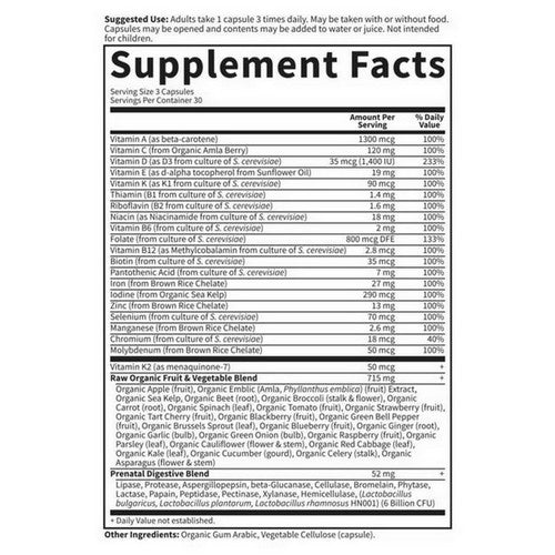 Vitamin Code RAW Prenatal Benefits: This unique formula is specially designed to provide immune support for BOTH mom and baby not only during pregnancy, but after birth as well: † * Supports the immune system of your unborn child† * Supports the immune system of Mom and her newborn baby† * Supports healthy digestion and elimination with Probiotics, Ginger, Vitamin D, and Zinc† * Helps ease common digestive discomforts typically associated with pregnancy† * Supports heart and blood health with Iron, Vitamins C, E, and B-Complex, plus Folic Acid† * Supports healthy neural tube development with 800mcg of Folic Acid† * Supports skin health with Vitamins A and C, Copper and Iron†