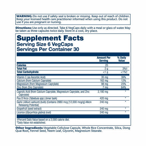 • With Caprylic Acid, Pau D'ARCO, Grapefruit Seed Extract, & Tea Tree Oil