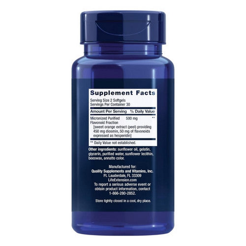 | Micronized Purified Flavonoid Fraction [sweet orange extract (peel) providing 450 mg diosmin, 50 mg of flavonoids expressed as hesperidin] | 500 mg | |